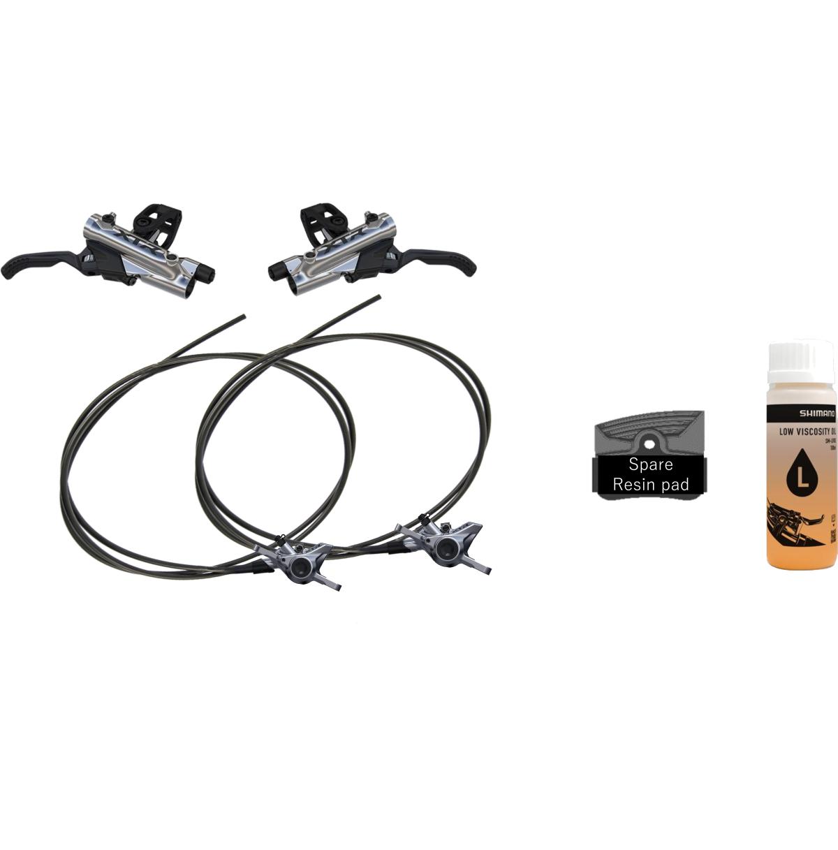 Hidraulikus tárcsafék Upgrade kit. Jobb és bal BL-M9200 fékkar. Jobb és bal BR-M9200 féktest és fékcső. Fémes fékbetét a fékben, plusz mellékelve 2 pár resin fékbetét. 100 ml Shimano Low viscosity olaj.