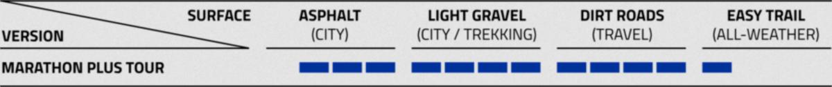 Külső gumi országúti kerékpárokhoz. Méret: 28*2.15 (622-55). Súly: 1410 g. Ajánlott guminyomás: 2-4 bar (35-65 Psi). Fényvisszaverő oldalfal. Maximum - Smart DualGuard - defektvédelem. Magas minőségű Addix-E gumiösszetétel. Sokoldalú gumiabroncs, robusztus konstrukció. Csak a Marathon Plus gumiabroncsok teszik defektmentessé a kerékpárt. Az 5 mm vastag defektvédő még a rajzszögek ellen is véd.
