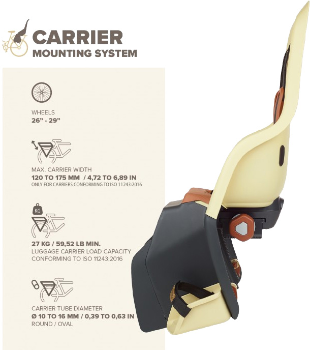 - FELSZERELÉS - E-bike kompatibilis, 120-175 mm széles csomagtartóra, 10-16 mm vastag csomagtartócsőre szerelhető, az összeszereléshez szerszám nem szükséges