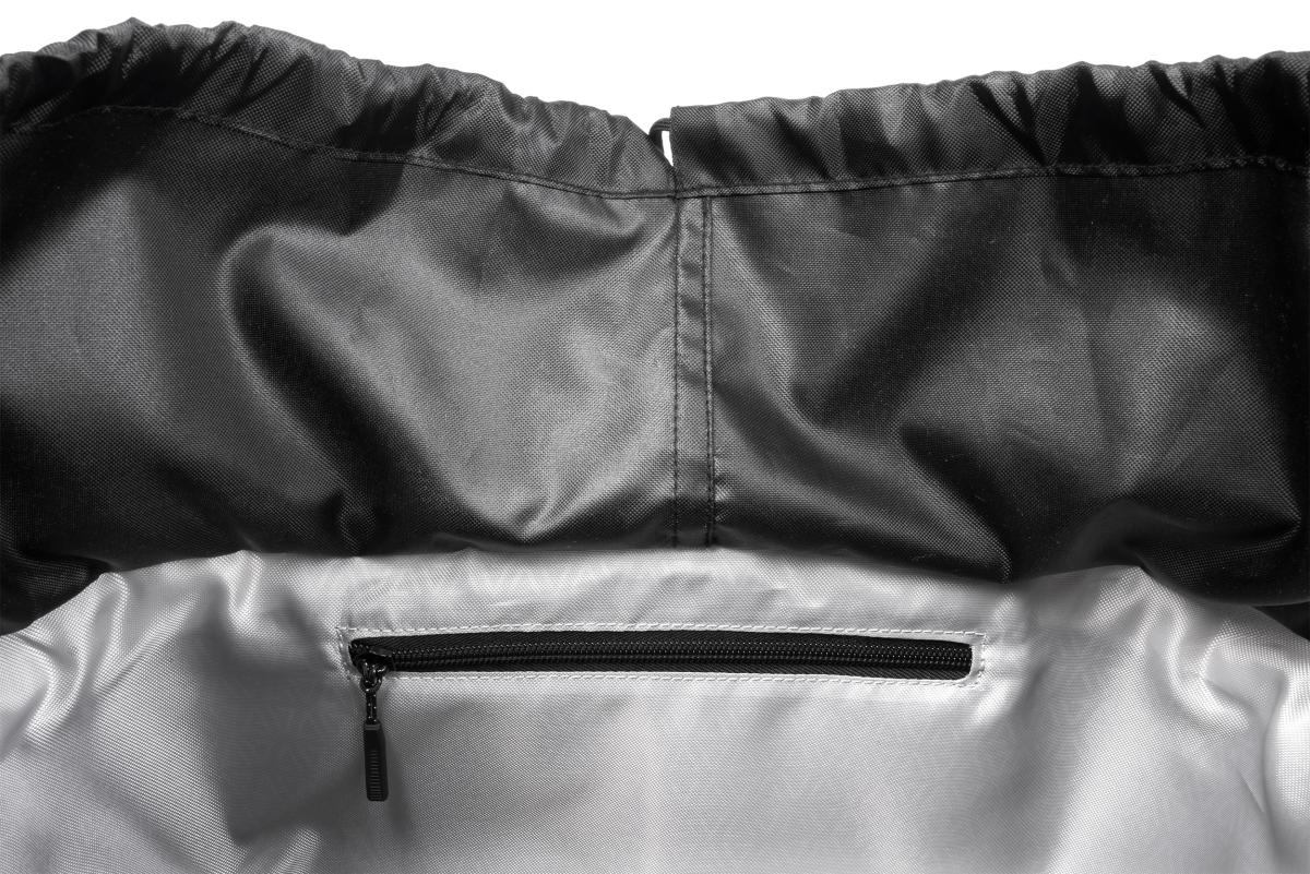 A praktikus, húzózsinóros fedél védi az értékes csomagot, a cipzáras belső zseb pedig a kisebb értékeknek nyújt helyet. A fényvisszaverő elemek növelik a biztonságot gyenge fényviszonyok között.