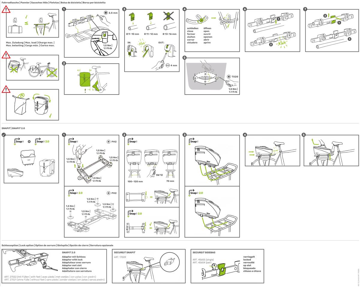Hátsó csomagtartó táska kerékpárra. Kétoldalas. Súly: 900 g. Méret: 32 (Szé) x 36 (Ma) x 14 cm (Mé). Űrtartalom: 2 x 12 l. Terhelhetőség: 2 x 6 kg. Dupla kattintás. Az előre felszerelt SNAPIT 2.0 adapternek köszönhetően mindössze egy kattintás kell, és máris használhatod a dupla csuklós oldaltáskák összes funkcióját. További jellemzők: alumínium kampós záródás, cipzáras belső zseb, hímzett logó, hordozófogantyú.